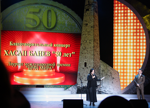 Направленность вечера создала удивительно теплую атмосферу в зале. Хасана Баиева поздравляли звезды эстрады, коллеги, друзья, чиновники, товарищи по спорту, бывшие пациенты и все те, кто восхищается его человеческим подвигом.