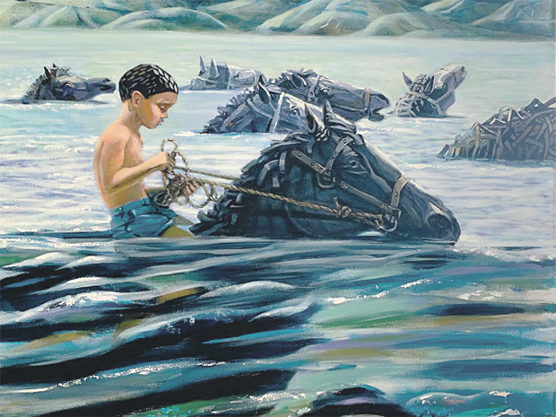 Картина Билаловой «Мальчик на лошади – купание чёрных коней». Фото: Михаил Макаров