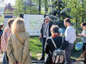 Экскурсия, которую ведёт Богданов, затрагивает и Георгиевский сквер, где в середине XX века установили памятник грузинскому поэту Шота Руставели. «Москва и Грузия связаны, – акцентирует Богданов. – Эти связи вплоть до мистических.