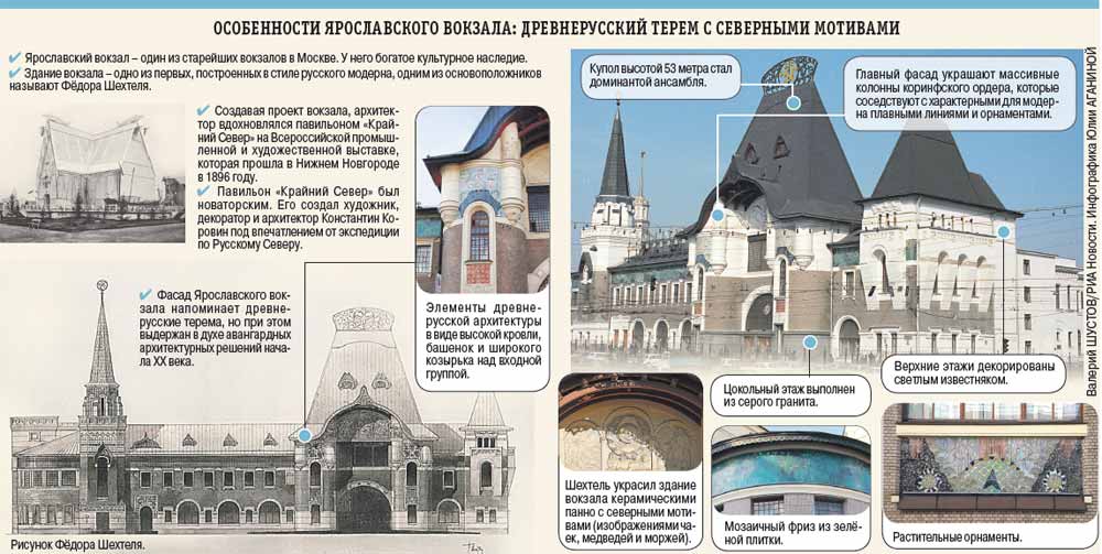 «Несмотря на то что Шехтель был по крови немцем, он умел очень точно передать дух русской архитектуры. Его работы в неорусском стиле поражают проработанностью фасадов, обращением к мотивам узорочья. Одним из главных творений Шехтеля стало здание Ярославского вокзала», – подчёркивает историк Ли Офан.