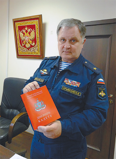 В руках у В. Крымского не простой дневник для оценок, а специальный, кадетский. Фото: автор