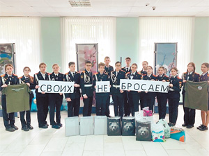 Костромское землячество сотрудничает с несколькими московскими школами, ученики которых передают письма и подарки солдатам и раненым. На фото: ученики кадетского класса школы № 1411.