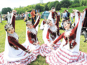 Основной же посыл, озвученный гостями, - от национального к многонациональному - полностью подтвердило всё происходившее позднее. Мужчины - и в тюбетейках, и в бейсболках, женщины - некоторые в национальных платьях, а иные в шортах, дети, разрисованные тигрятами и примеряющие первые татарские шапочки, легко и непринуждённо провели вместе много-много часов на берегу главной московской реки, выплясывая кто во что горазд, следя за борцами на ринге, участвуя в самых разнообразных конкурсах. Без пьянства, безобразий и вандализма. Напротив, весело и в то же время спокойно, как бывает в большой любящей семье, выбравшейся на природу погожим выходным днём.