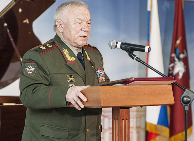 Генерал армии, президент Клуба военачальников Российской Федерации А.С. Куликов поздравляет Дом национальностей с 15-летием. Фото: автор