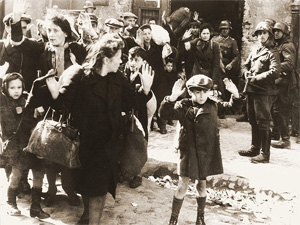 Фотография из рапорта Юргена Штропа, руководившего подавлением восстания в Варшавском гетто. Оригинальная подпись гласила: «Силой извлеченные из убежища»