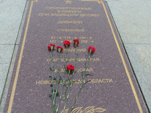 Более 10 лет назад по инициативе московских региональных сибирских землячеств на Волоколамском шоссе был открыт величественный монумент «Мемориал воинам-сибирякам», который олицетворяет собой значительный вклад сибирских дивизий в нашу общую победу над врагом на полях Подмосковья. На плитах мемориала увековечены наименования двух армий, 26 дивизий, 6 стрелковых бригад, соединений (преобразованных в гвардейские) и поимённый список 19 воинов-сибиряков, удостоенных звания Героя Советского Союза в ходе битвы за Москву.
