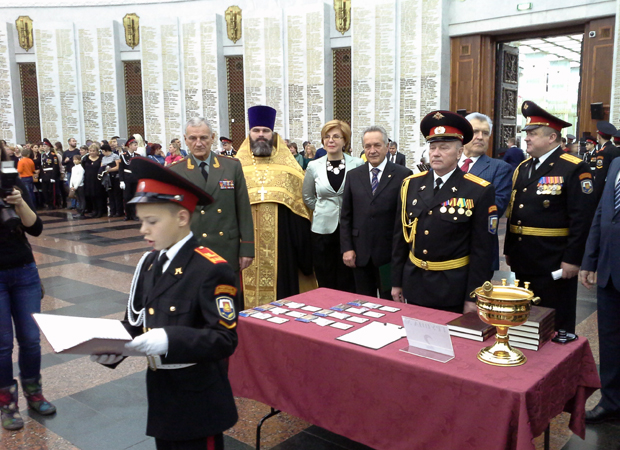 18 октября 2014 года в Зале Славы Центрального музея Великой Отечественной войны на Поклонного горе прошла Торжественная церемония принятия кадетской клятвы воспитанниками Московского кадетского казачьего корпуса им. М.А. Шолохова.
