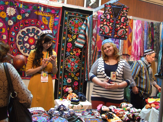И 21 марта зрители получили возможность совершить потрясающее путешествие — они будто отмечали Навруз вместе с разными народами. А заодно узнавали, как празднуют его в дальних краях. Например, в Азербайджане в этот день накрывают обильный стол и стараются поделиться яствами со всеми соседями. По преданию, чем больше угощений раздашь, тем больше удачи и богатства прибудет в грядущем году. В Туркмении в Навруз к людям приходят на праздник Навруз-баба и Бахаргуль (это что-то вроде наших Деда Мороза и Снегурочки, только в весеннем варианте). В Таджикистане в честь «Нового года» потенциальный жених вычищает хлев, принадлежащий отцу будущей невесты. И чем сноровистей и хозяйственнее претендент, тем больше у него шансов стать мужем понравившейся девушки. А в фойе концертного зала гостей встречала шумная выставка-ярмарка, где можно было купить фантастические по красоте и изяществу вещи: татарские тапочки, отделанные мехом и вышивкой; азербайджанские украшения и музыкальные инструменты; афганские картины и подсвечники; башкирские лечебные травы и мёд; дагестанские кинжалы и серебряные украшения; курдские настенные ковры, таджикские сувениры и чудесные ткани, туркменские халаты и тюбетейки, узбекские платки и какие-то немыслимые сумочки, отделанные золотом и бисером. Рядом работал потрясающий буфет, где можно было отведать казахские баурсаки, узбекский плов, башкирский мёд, манты, самсу — все меню и перечислить трудно. Так что, каждый гость «Московского Навруза-2015» нашел на празднике себе занятие по душе, и получил отменный заряд бодрости. Но ведь так и должно быть — весна пришла, и это прекрасный повод для радости.