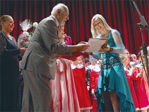 Руководитель хора-победителя из Гомеля Ольга Румилова получает заслуженную награду