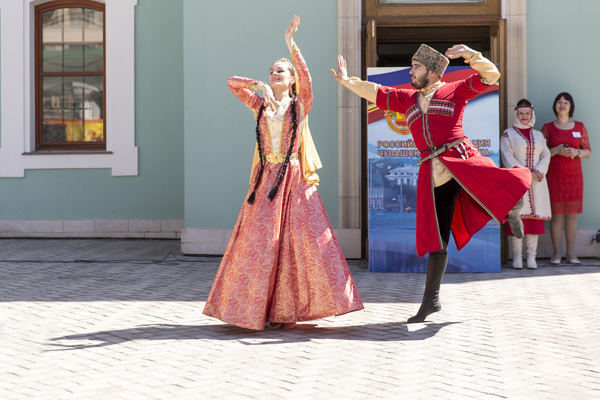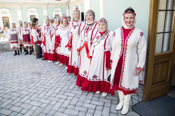 Гостей Акатуя в Доме национальностей ждала насыщенная яркая программа. Во дворе девушка и юноша в красивых чувашских костюмах угощали всех хлебом и пивом.