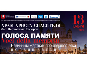 13 ноября 2017 года в 19.00 в Зале Церковных Соборов Храма Христа Спасителя состоится уникальный мемориальный проект «Голоса памяти/ Voci della memoria.