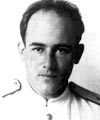 Эммануил Генрихович Казакевич, 31 год. Родился в городе Кременчуге на Украине. В 30-е годы жил и работал в Биробиджане. На фронт ушел добровольцем, хотя считался негодным к службе по зрению. Участник обороны Москвы. Служил в разведке, гвардии капитан. После войны –известный писатель, киносценарист.