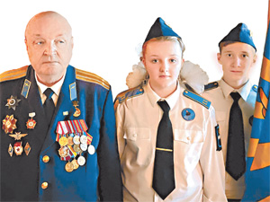 Президент Ассоциации «Нормандия-Неман» лётчик Сергей Аракчеев на встрече со школьниками-юнармейцами
