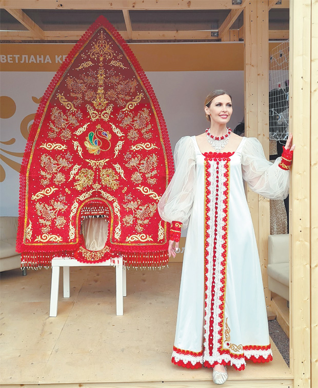 XII ежегодный Межрегиональный фестиваль славянского искусства «Русское поле» стал событием в культурной жизни Москвы — его физически посетили свыше 225 тыс. человек, а за прямой трансляцией праздника следили 38,5 млн человек из 143 стран мира. Было поставлено шесть рекордов: сварено по 2 т древнерусской кальи и днепровской каши, сплетено два двухметровых лаптя, проведён парад кокошников и сшит Царь-кокошник. Последний достиг в высоту 222 см и в ширину 130 см, а вес его составил почти 4 кг. Царь-кокошник пронесла на своей голове модель Лилия Калмыкова. Фото: Эвридика Калмыкова, модель Лилия Калмыкова