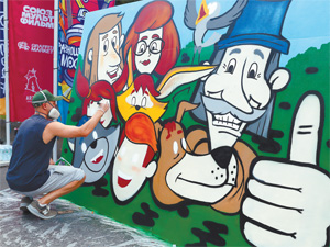 Егор Спаун специально приехал на фестиваль из Владивостока. На холсте Егор изобразил персонажей из известного советского мультфильма Бориса Дёжкина «Шайбу! Шайбу!». «Граффити я занимаюсь уже больше 10 лет и часто рисую именно этих ребят, – рассказал Егор. – Главная тема мультфильма – соперничество между командами «Метеор» и «Вымпел», однако на моей картине члены команды пожимают руки, а один из них несёт в сумке цветок – символ дружбы. На мой взгляд, этот сюжет отлично вписывается в тематику фестиваля». Остальные участники на своих картинах изображали героев мультфильмов «Простоквашино» и «Умка», жар-птицу, богатыря и других сказочных персонажей.