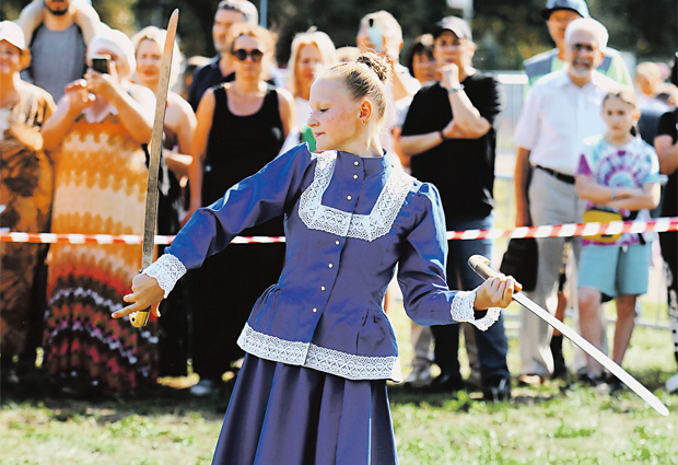 Людно было вокруг площадок, где выступали мастера в казачьих военно-прикладных видах спорта. Соревнования по фланкировке и рубке шашкой стали изюминкой праздника. В этих локациях царила особая атмосфера, красочная и экзотичная. Шашками над головой увлечённо крутили казачата в папахах, шароварах и сапожках, мужчины в разноцветных бекешах и девушки в традиционных казачьих нарядах. Кстати, по словам экспертов, фланкировка находится на границе между спортом и искусством (как, скажем, фигурное катание и художественная гимнастика), поэтому ею увлекаются и женщины. Одна из них – главный организатор турнира по искусству владения казацкой шашкой Юлия Чередниченко, большой специалист по владению холодным длинноклинковым оружием.