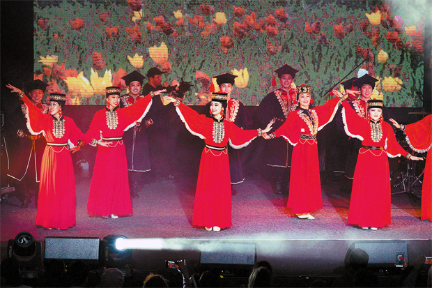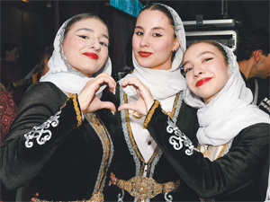 Участницы ансамбля калмыцкого танца «Ур Сар» Радмила Бакалдыкова и Баира Арсенова родом из Элисты. Девушки – аспирантки московских вузов. Радмила получает экономическое образование, а Баира выбрала направление, связанное с туризмом. «Чтить национальные традиции для нас так же важно, как и для представителей других народностей нашей большой страны. Сегодняшний вечер – яркий тому пример. И как здорово, что благодаря таким мероприятиям у всех есть возможность узнать, познакомиться с традициями, праздниками других народов, – говорят они. – У каждого народа свои обычаи, символы, потрясающей красоты костюмы. Мы сегодня выступаем в одеждах красных тонов. Красный цвет в нашей культуре – символ праздника, радости, счастья, победы. Орнамент, узоры на костюмах символизируют связь, единение с природой».