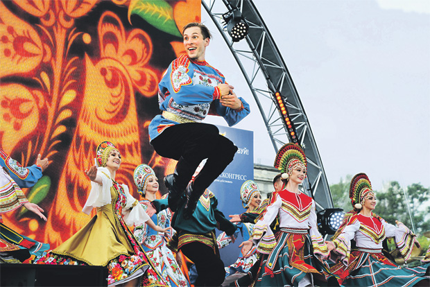 Национальные костюмы, яркие украшения, танцы, которые танцевали наши предки, песни, которые сложили народы в незапамятные времена и переделанные на современный лад, – в день «Самоварфеста» атмосфера, царящая на площадке у фонтана «Каменный цветок», погружала гостей во множество культур и традиций.