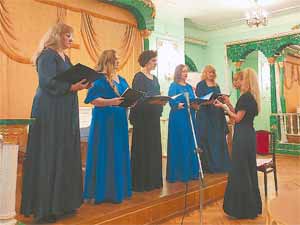 Коллектив исполняет песнопения на греческом молебне.