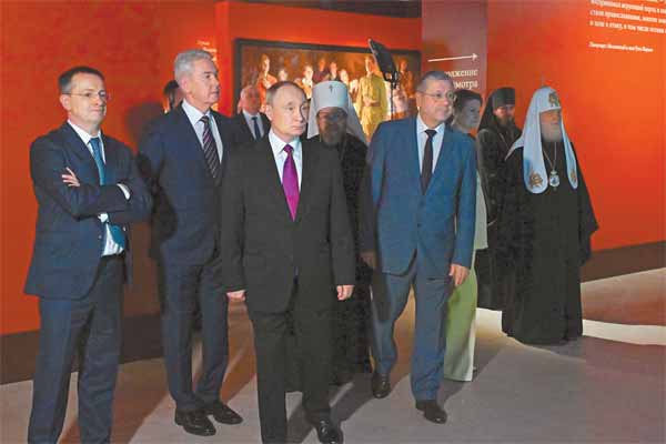 Знаковым событием ноября стала открывшаяся в дни Международного форума «Народы России и СНГ» в «Манеже» выставка «Великая Победа. Россия — моя история», которая будет работать до 8 декабря. Среди артефактов времён Великой Отечественной войны — Знамя Победы, наградной лист лётчика Алексея Маресьева, дневники блокадников. Посмотреть на экспонаты в день открытия выставки пришли (слева направо): помощник Президента РФ, председатель Российского военно-исторического общества Владимир Мединский, мэр Москвы Сергей Собянин, Президент России Владимир Путин, митрополит Крымский и Симферопольский Тихон, руководитель Росархива Андрей Артизов, Патриарх Московский и всея Руси Кирилл. Фото: Пресс-служба мэра и Правительства Москвы