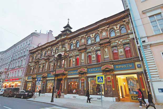 «На Мясницкой улице располагается яркая достопримечательность – чайный дом Перлова. В том виде, в котором мы его знаем, он был построен к 1896 году. Ранее здесь уже располагалось владение Сергея Васильевича Перлова, наследника династии чаеторговцев, но он решил его перестроить: согласно московской легенде, он подготовил этот проект к приезду китайского посла Ли Хунчжана, который должен был присутствовать на коронации Николая II. Купец надеялся, что во время визита посла сможет заключить выгодную сделку по поставкам чая», – рассказывает экскурсовод Светлана Костина.