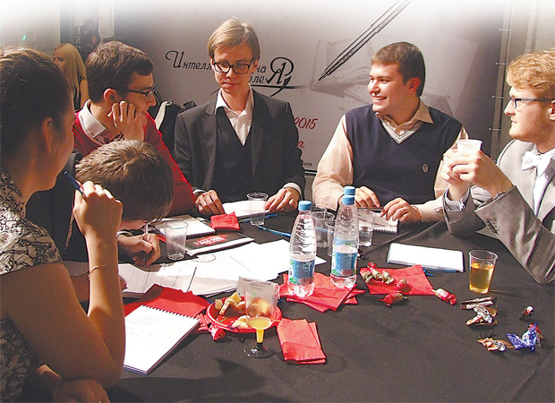«Тема 70-летия Великой Победы — главная для всей страны, поэтому мы выбрали её в качестве основной в игре», — считает Виолетта Симанкова, заместитель председателя молодёжной комиссии Московского координационного совета региональных землячеств при правительстве Москвы. Первым раундом интеллектуальных упражнений стали «Вопросы в картинках». Изображения на огромном экране были очень неожиданными: то странное приспособление, вызывающее смутные ассоциации то ли со старинной маслодавильней, то ли с инструментом палача, то фотография невероятно красивой горы со снегом на вершине, которую в XIII в. первым покорил какой-то монах... Игроки обсуждали друг с другом вероятные варианты ответов, хихикали, недоумевали, огорчались, радовались, безнадёжно опускали руки — одним словом, переживали такие бури эмоций, каких не испытаешь ни в экстремальном походе, ни в московском метро в час пик. А в конце раунда, когда команды уже сдали листки с готовыми ответами, выяснилось, что жутковатое приспособление оказалось средневековыми ходунками для младенцев, а прекрасная гора — знаменитой Фудзиямой.