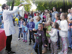 Малышня от 4 до 10 была в восторге от шоу мыльных пузырей, игр на сообразительность и настоящих научных конкурсов, во время которых дети узнавали немало интересного. «При какой температуре замерзает вода?» - спрашивает ведущий. «При холодной», - не задумываясь, отвечают малыши, и нельзя сказать, что они совсем неправы. «Чем мы дышим?» - звучит следующий вопрос. «Ноздрями!» - уверенно отвечают участники «семинара», и опять всё верно!