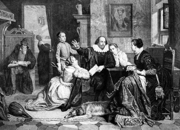 Гравюра XIX в. Шекспир читает «Гамлета».