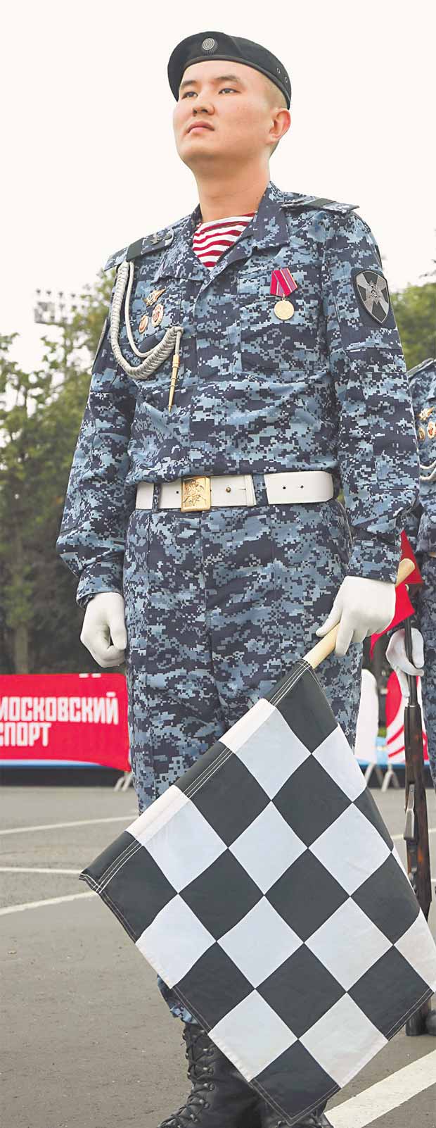 Росгвардеец с финишным флагом. Фото: Юлия Федотова