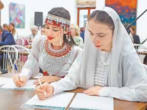 Лилия Щербакова, представительница народов Севера, пишет диктант уже не в первый раз. «Так приятно, что мы собрались всей большой семьёй, – говорит она, одолев тест. – Я сегодня нашла вопрос про наш эскимосский народ, про привычку подбрасывания детей на нерпьих шкурах во время праздников». Лилия пришла в национальном костюме эскимосов. «В такой день стоит выглядеть необычно, – признаётся она. – Каждая деталь в костюме – от знака Солнца на лбу до колокольчика под мышкой – имеет защитное значение».